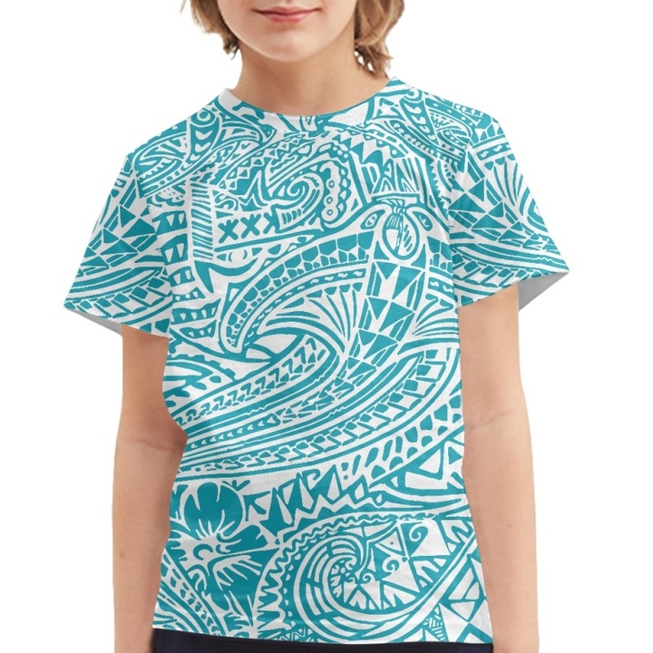 Drop shipping alta qualidade cor preta polinésia crianças t-shirts